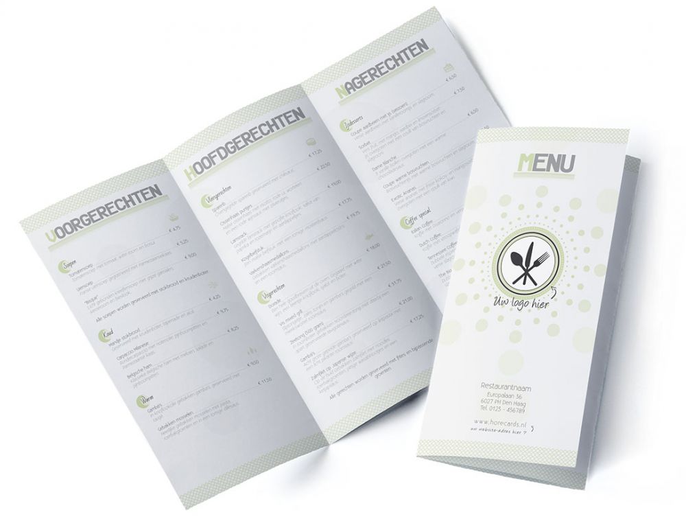 Natuurlijk kunnen wij deze menukaart ook in uw huisstijlkleuren maken. Selecteert u dan bij optie 1: 'Andere kleurstelling'.