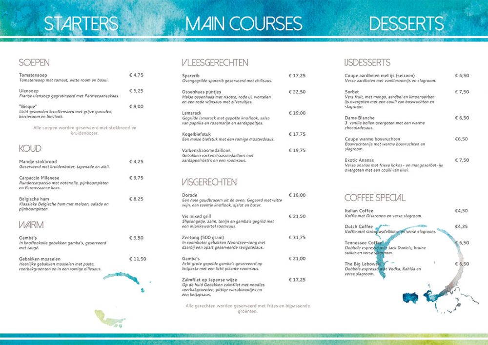 Menukaart Watercolor